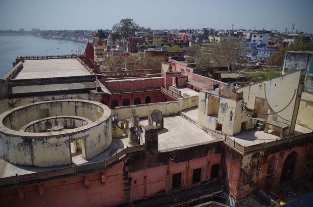 Depuis notre chambre d’hôtel, on avait une vue sur le Jantar Mantar de Varanasi (moins grand que celui de Jaipur).