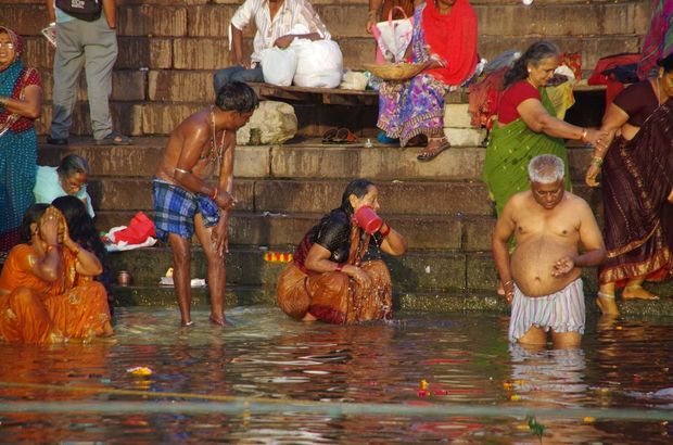 En revenant du ghat de crémation, nous sommes passés devant tous les indiens qui se lavaient dans le Gange.