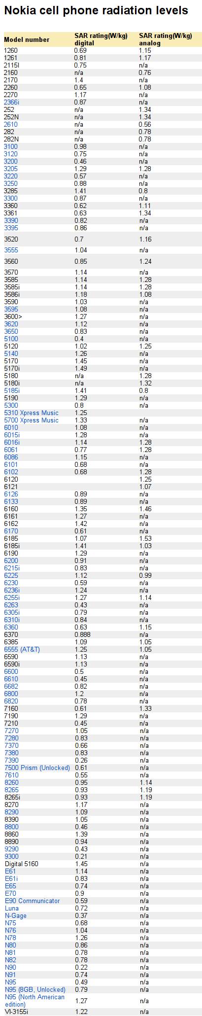 Le site CNET a fait un classement des téléphones portables par débit d’absorption spécifique (DAS en français et SER en anglais).