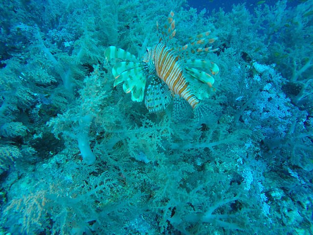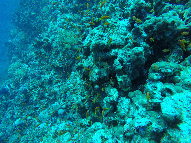 2ème plongée, on part du bateau (qui est amarré au sud ouest) vers la pointe sud d’Elphinstone Reef. On fait un enlevage de masque à 40m puis on finit la plongée en revenant au bateau. On verra notamment un petit vers blanc ainsi qu’une murène blanche toute petite.