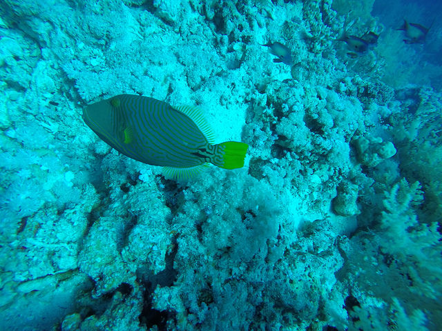 Amr veut cette fois-ci être le premier dans l’eau. En effet, il a l’impression de voir moins de choses en plongeant dernier que la palanquée de marseillais qui sont avec nous sur le bateau. Donc il nous dit de nous presser pour nous préparer. L’objectif de cette plongée est de partir du bateau vers la pointe sud, de la contourner puis remonter vers le nord par le côté Est jusqu’au champs de gorgones qui sont entre 25 et 45 mètres de fond.